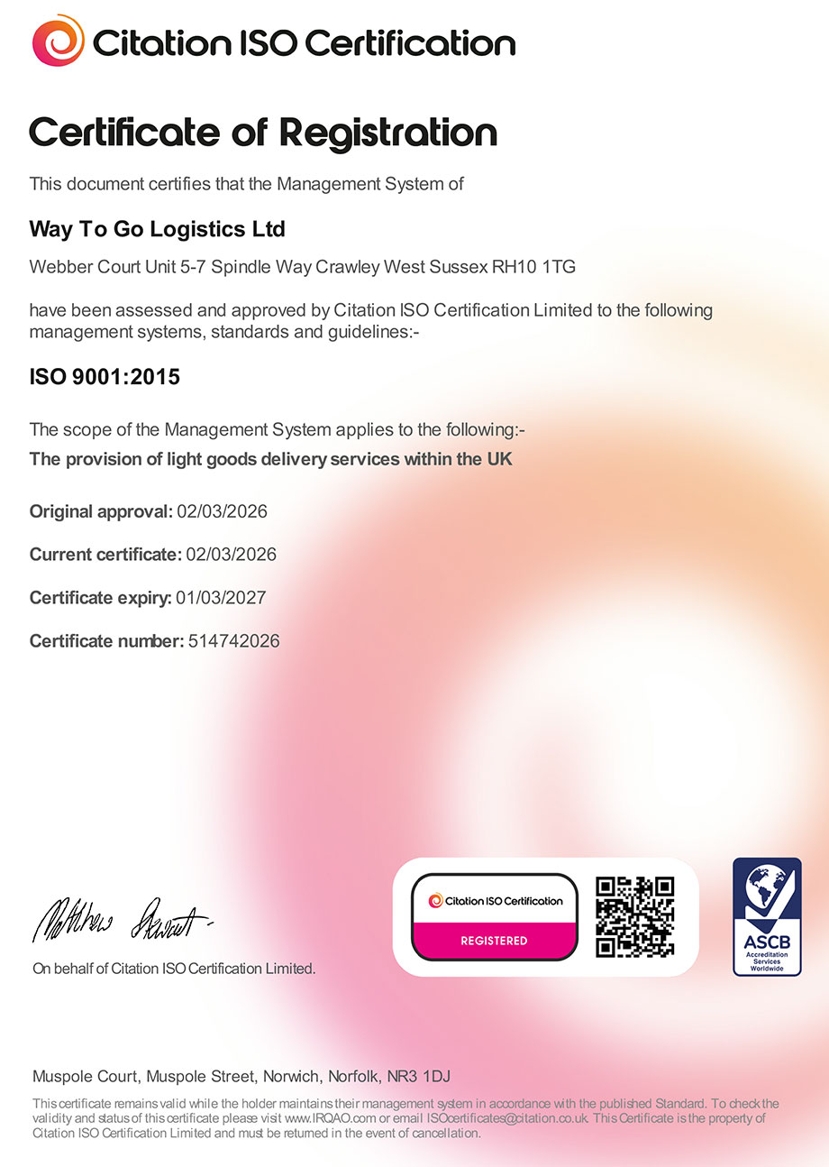 When nothing less than a responsive service will do and your package needs to be delivered as soon as possible, Way to Go Logistics Ltd can help. We are your dependable same-day delivery specialists with multi-drop courier services available to a discerning clientele that appreciates the fast, efficient solutions provided by our team.